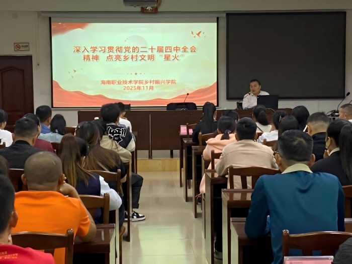 11月15-16日,乡村振兴学院直属党支部书记唐启政分别在临高县委党校和定安中学开展“双学历”专班两委干部“深入学习贯彻党的二十届四中全会精神,点亮乡村文明‘星火’”和“传达学习习近平总书记在听取海南自由贸易港建设工作汇报时的重要讲话精神”活动。